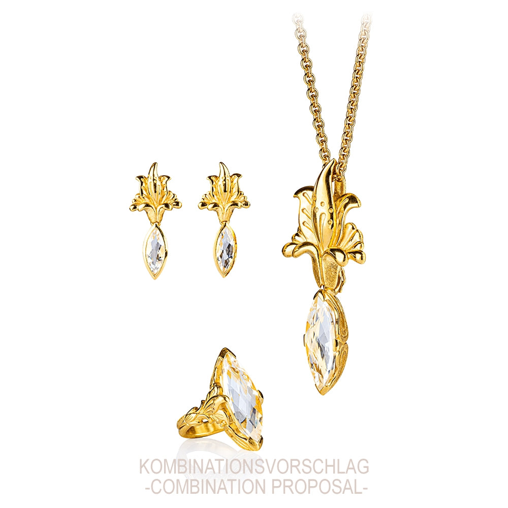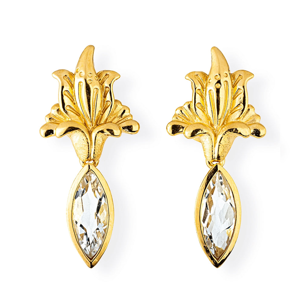 La Belle Epoque Blüten Clipohrstecker aus Silber goldplattiert mit Bergkristallnavette