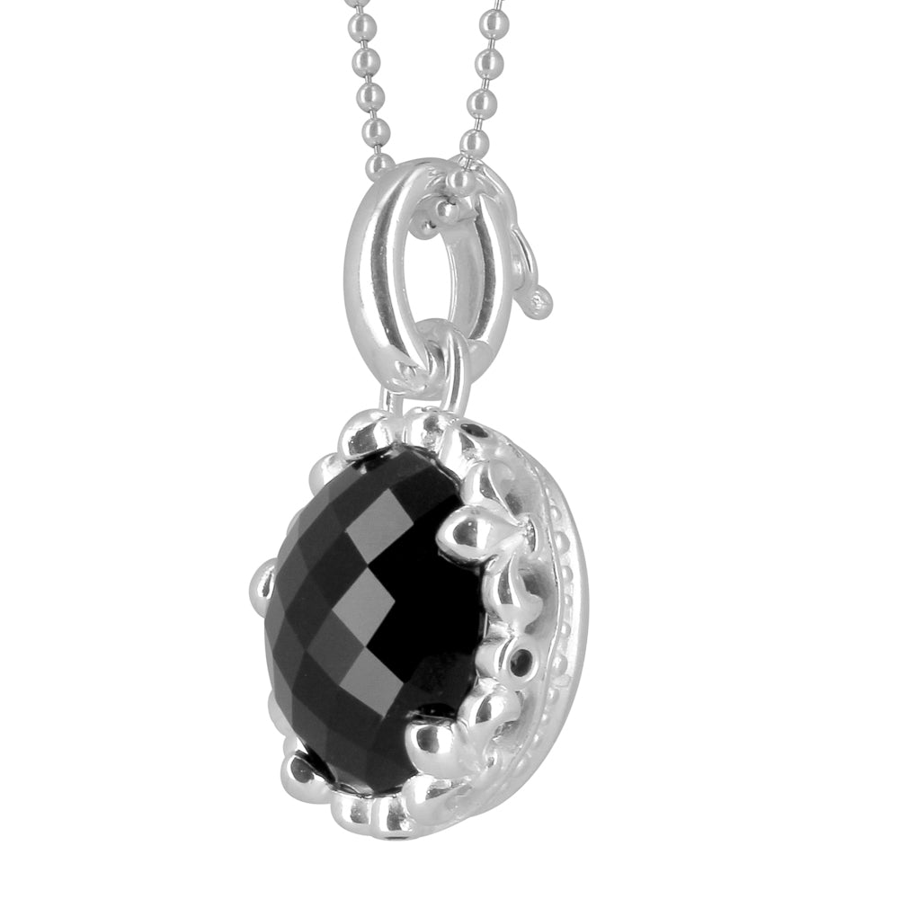 Lilienkönigin, großer Kronen Anhänger aus Silber mit Onyx und Klappöse.