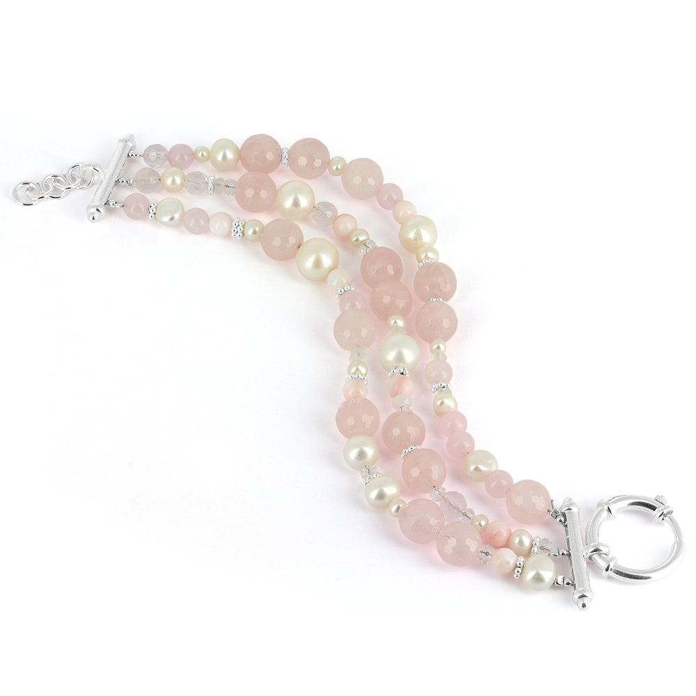 Das Armband ist ein wilder Mix aus Süßwasserperlen, Rosenquarzen und Bergkristallen in unterschiedlichen Größen und Schliffformen. Dieses Traumstück lebt durch sein "geordnetes Chaos" und hat dadurch einen unvergleichlichen Bohem Style.