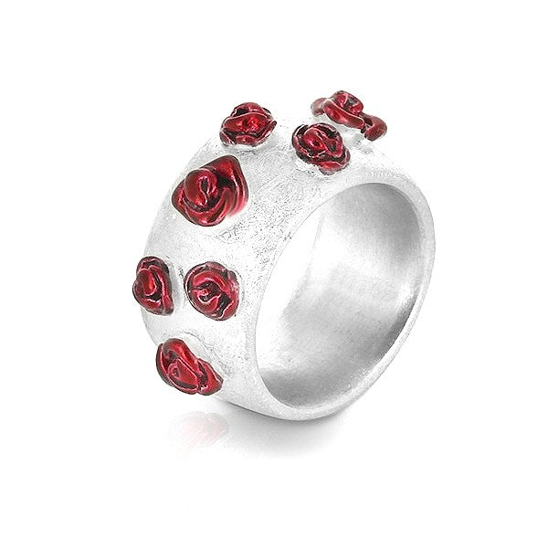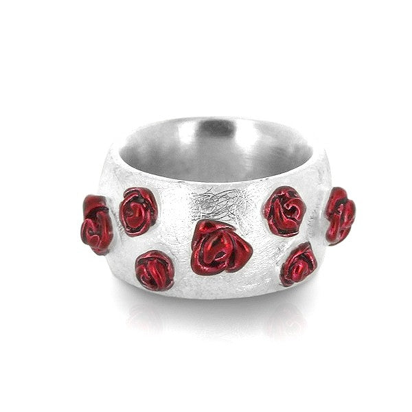 Rosenkavalier Ring aus Silber und Rosen mit rotem Brandlack