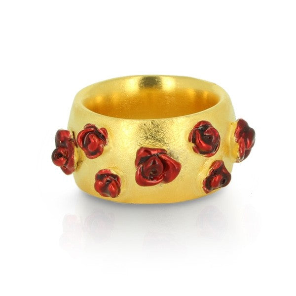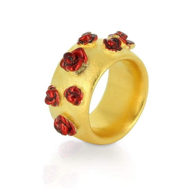 Rosenkavalier Ring aus Silber goldplattiert und Rosen mit rotem Brandlack