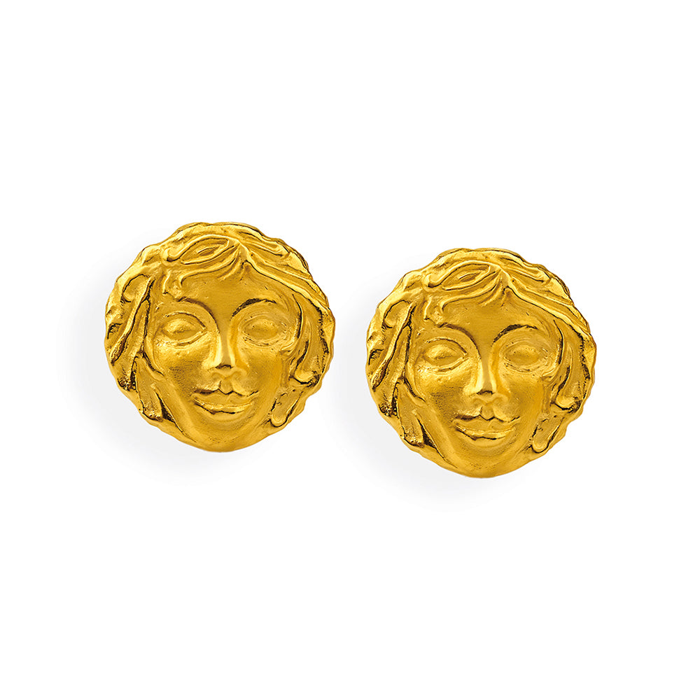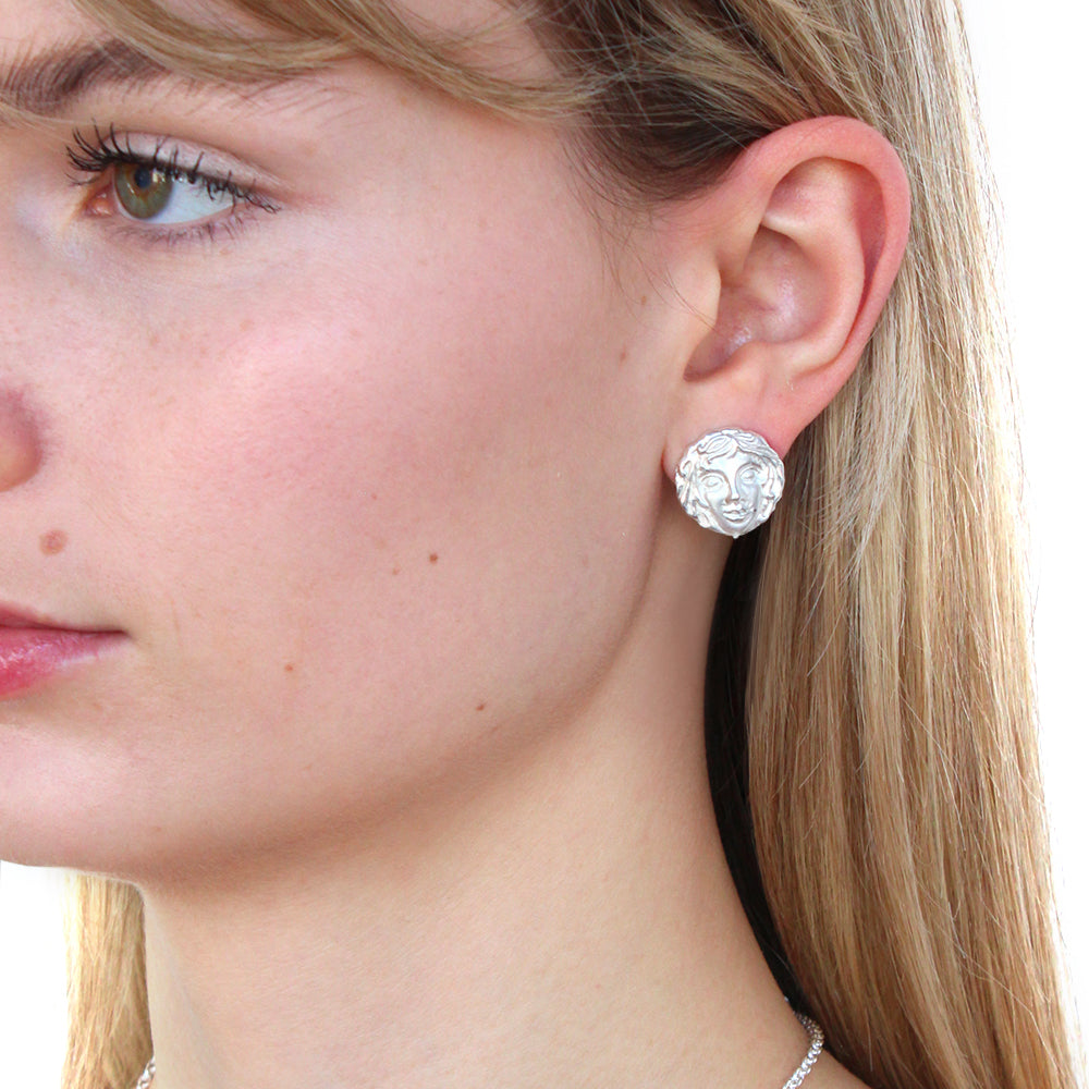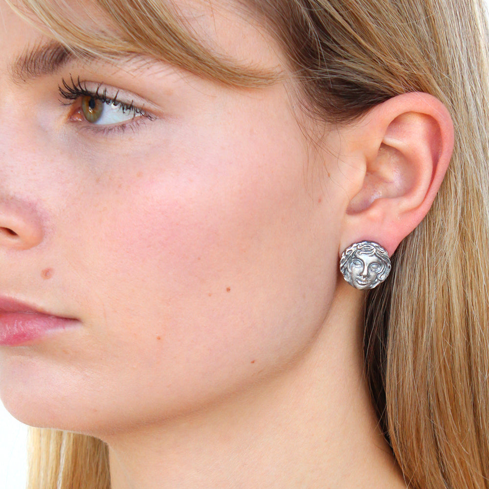 Wie auf antiken Münzen erscheint das edle Antlitz der Aphrodite auf diesen Ohrringen. Es ist lieblich, so, wie es sich gehört für die Göttin der Schönheit und Liebe. Der Legende nach verzaubert Aphrodite mit ihrer Schönheit und ihrem unwiderstehlichen Liebreiz alle, die ihr begegnen. Doch bei aller Sanftmut kann sie, wie alle Frauen, auch richtig wütend werden, wenn sie gereizt wird. Wir übernehmen keine Garantie, was passiert, wenn Frau diesen Schmuck trägt....