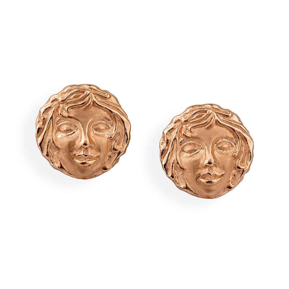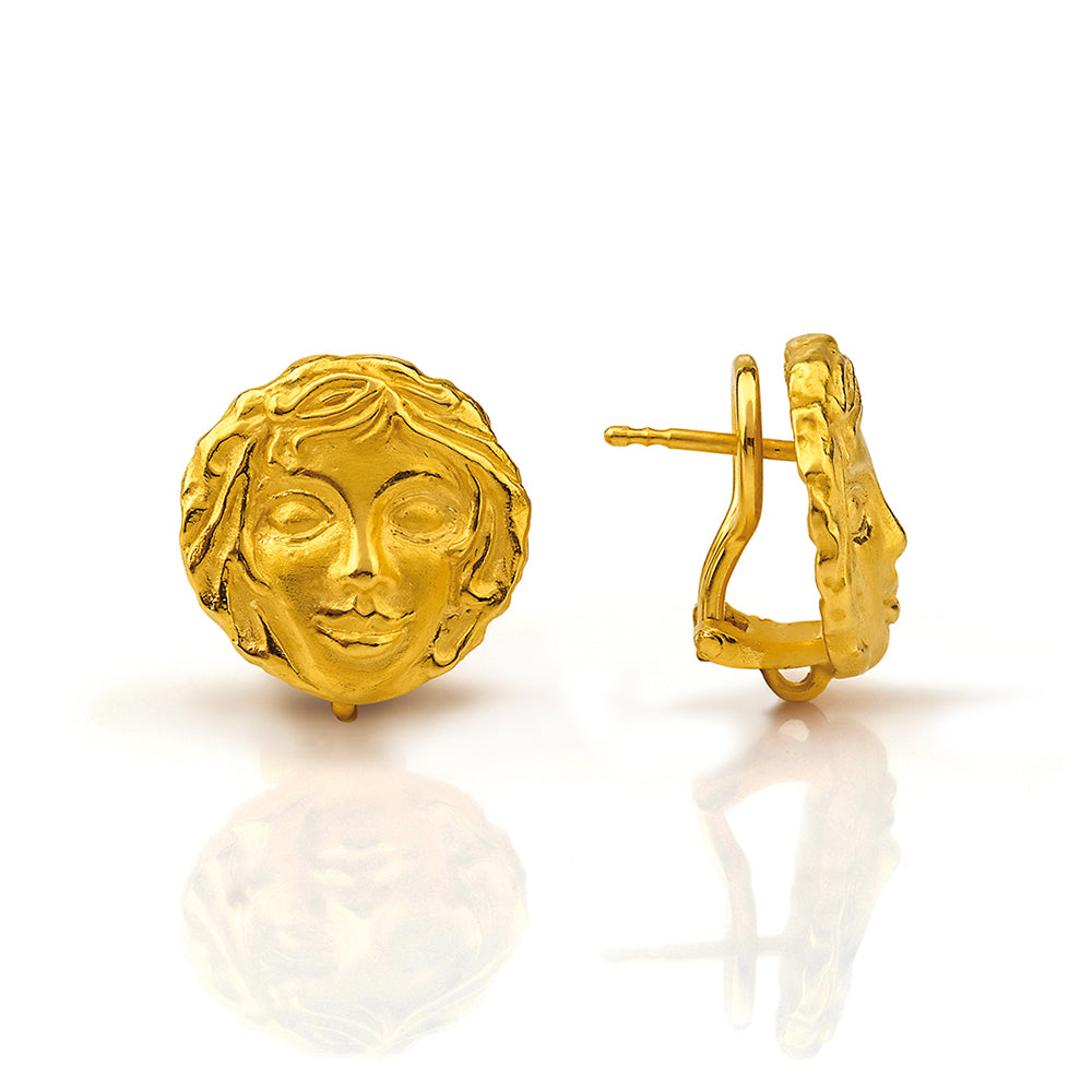 Durch die teils mattierte, teils glänzend polierte Oberfläche kommen die detailverliebt gearbeiteten Gesichtszüge der Aphrodite besonders schön zur Geltung und dies verleiht den wunderbaren Ohrringen ihre überaus lebendige und intensive Ausstrahlung.