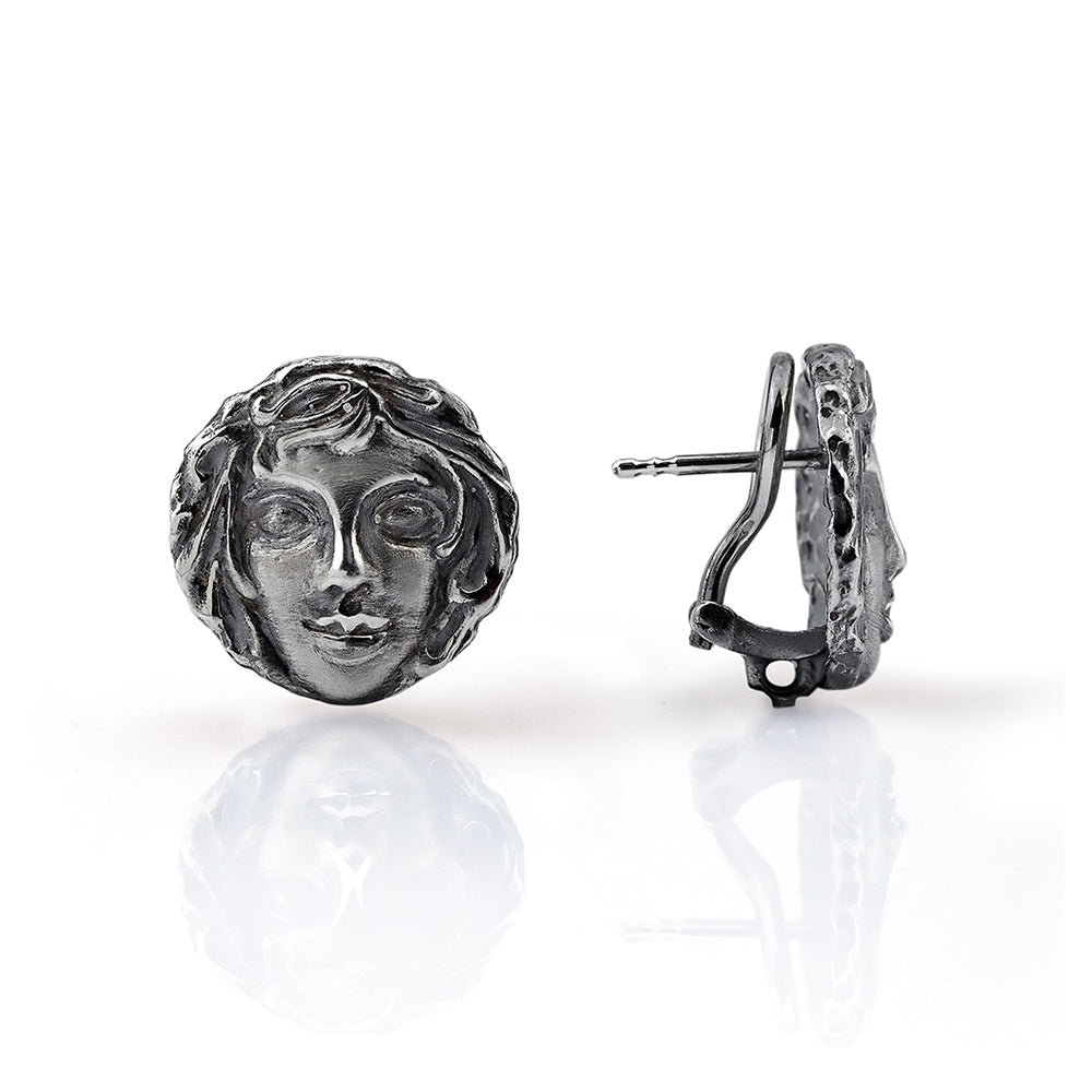 Zeus & Aphrodite, Aphrodite Clipohrstecker aus Silber im Vintagelook.